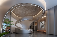 This project is located by the shores of Yingyue Lake, drawing inspiration from the meandering forms of rivers. Embracing the smooth and dynamically expressive curves inspired by the lake's contours, it creates an atmosphere of unrestricted freedom. The renowned Spanish architect Gaudi once remarked, 'Nature knows no straight lines; those belong to humanity, while curves belong to God.' Employing curves in its design, this project achieves a dramatic effect, infusing the restaurant with a chic technological vibe and avant-garde dynamism.