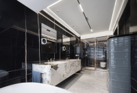 The designer utilizes the abrupt structure of the building to set up an island-like closed installation space in the middle of the space, which functions as a storage room, while others, such as the guest dining room, family room, kitchen, and staircase, unfold around it, creating a spatial effect of “creating something out of nothing”. In order to minimize the visual impact of the island, a combination of diagonal lines and arcs are used as the sequence elements of the space, which is smooth and tense at the same time.