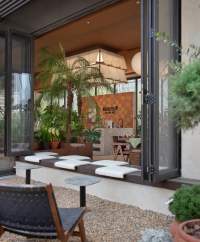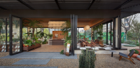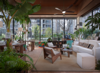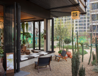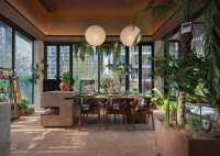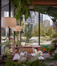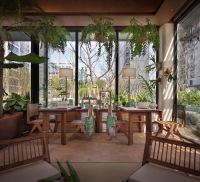 The space adopts wabi-sabi aesthetics as its foundation, blending medieval elements with natural materials such as microcement, reclaimed ship timber, washi paper, and cotton-linen fabrics. This creates a multifunctional composite conservatory space that integrates a plant greenhouse, coffee lounge, and craft workshop. Through the dialogue between coarse and refined textures, an immersive natural experience is cultivated. This spatial design transcends mere stylistic collage.